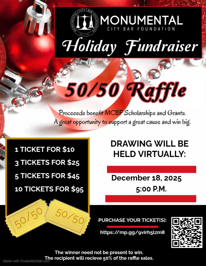 The mission of the Monumental City Bar Foundation, Inc. (MCBF), as expressed in its Charter, is “to raise funds for scholarships and grants, and/or sponsorship of community related activities.”